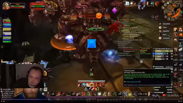 01:54:46Der Streamer betont die Wichtigkeit von Teamwork und Erfahrung, besonders bei der Zusammenarbeit in einer Fünfergruppe. Mit 21 Jahren WoW-Erfahrung kann er das Verhalten seiner Mitspieler einschätzen und seine Taktik anpassen. Er erklärt den Plan für den nächsten Kampf, inklusive der Nutzung von Recklessness, um die Aggro zu kontrollieren. Er fordert seine Mitspieler auf, die Bossmechaniken zu kennen.