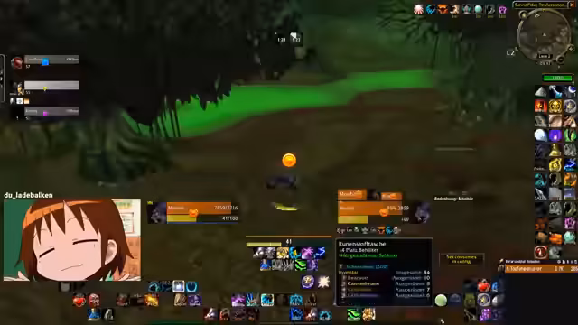 06:08:21Interaktion mit Gildenmitgliedern wie Holger und anderen wird diskutiert, wobei Verzauberungsrezepte, insbesondere für Mondstoff, im Fokus stehen. Es geht um den Austausch von Materialien wie Runenstoff und die Organisation von Kooperationen, um gemeinsam Rezepte zu beschaffen. Der Streamer erwähnt auch die Suche nach Mondbrunnen-Locations via Google, was die kooperative Planung unterstreicht.