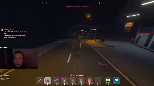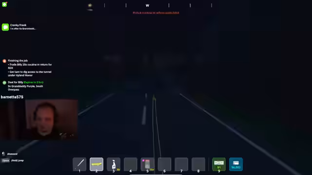 00:00:00Der Stream startet mit technischen Problemen, die zu einem Neustart führen. Der Streamer möchte das Spiel weiter spielen, ist sich aber unsicher über den Erfolg. Es werden erste Dealer-Kontakte aufgenommen, darunter Billy Cramer und Charles Rowland. Der Streamer sucht nach einem Dealer für die Stock und trifft Jane an den Docks, der er eine Pistole und Methamphetamine übergibt.