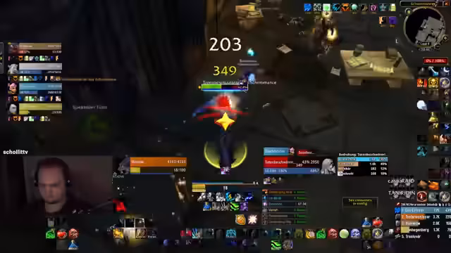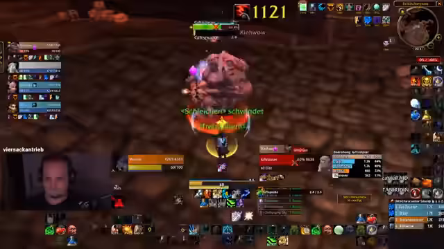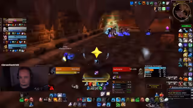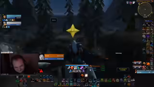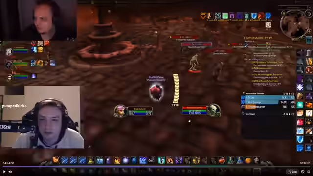 03:43:03Nach einem erfolgreichen Pull und einem Schaden Reset durch den Streamer, wird die Gruppe durch die Ankunft weiterer Mitspieler erweitert. Der Streamer übernimmt die Führung, verteilt Rollen wie das Anziehen von Mobs und stellt sicher, dass alle Player auf der gleichen Seite der Aura stehen. Die Kommunikation ist präzise, um die Chaossituation im Dungeon unter Kontrolle zu halten und reibungslos weiterzuziehen.