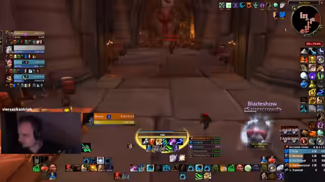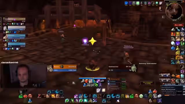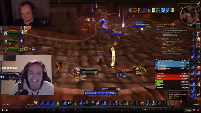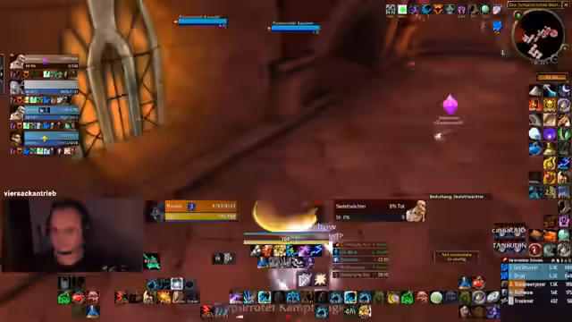 02:26:20Der Stream beginnt mit einem sehr anstrengenden Dungeon-Pull, bei dem der Spieler als Krieger mit Mobs zu kämpfen hat. Er beschreibt die Schwierigkeiten, speziell mit einem Pull von 30 auf 2 Mobs, und äußert Frustration darüber, nicht wie ein Paladin oder mit der Fähigkeit 'Innerer Wut' agieren zu können. Nach einem holprigen Start mit fehlerhaften Positionierungen und verpassten Fähigkeiten wie 'Blizzard' aufgrund von Unterbrechungen, gelingt es der Gruppe, eine schwierige Situation mit Skeletten zu meistern und zieht anschließend weiter.