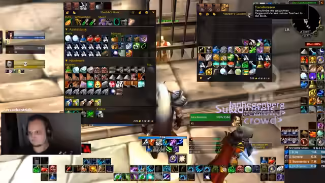 05:48:54Interaktionen mit der Community, wie zum Beispiel Jan, werden gezeigt, bei denen das Crafting von Gegenständen und der Ressourcenaustausch wie Eisenweberseide im Mittelpunkt stehen. Der Streamer stellt seine Fähigkeiten als Handwerker zur Verfügung, um anderen Spielern zu helfen. Es kommt zu Unklarheiten bezüglich der benötigten Materialien und des Nutzens von Items, was zu humorvollen Momenten führt. Außerdem wird die technische Machbarkeit des Tradings in der Welt von World of Warcraft diskutiert.