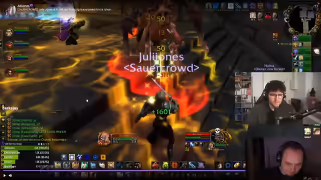 06:28:52Es werden praktische Tipps für das Spiel ausgetauscht. Ein Zuschauer empfiehlt den Einsatz von Weak Auras zur Überwachung von Fähigkeiten wie CC-Tracks. Der Streamer erklärt die Umstellung der Soundspuren im Spiel, um Dialoge aus der Umgebung zu hören und wichtige Quest-Objekte nicht zu übersehen, wie einen versteckten Schilder im Boden.