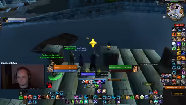 04:35:58Der Fokus wechselt zum Gameplay. Der Streamer beschäftigt sich intensiv mit dem Angeln, erreichte dabei hohe Level und tauschte sich über Fangausrüstung und -techniken mit dem Chat aus. Anschließend wurde ein Dungeon 'Scholomance' absolviert, wobei es zu einer kritischen Situation kam, in der der Tank die Aggro verlor und der Warlock bedrohlich viel Schaden erlitt. Eine kurze Analyse des Fehlers folgte, bei der die mangelnde Erfahrung des Tanks und fehlende Addons als mögliche Ursachen identifiziert wurden.