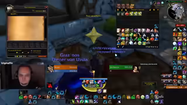 00:00:13Der Stream wurde gestartet. Der Streamer beschäftigt sich zunächst mit technischen Anpassungen an seinem Interface, um Fehlklicks zu vermeiden. Es werden die Todesköpfe im Inventar ungebunden, um Platz zu schaffen. Auch wird der Wunsch geäußert, das Interface für eine bessere Benutzerfreundlichkeit zu optimieren. Ein Verweis auf World Buffs wird gemacht, wobei es zu technischen Schwierigkeiten mit der Telekom-Verbindung kommt.