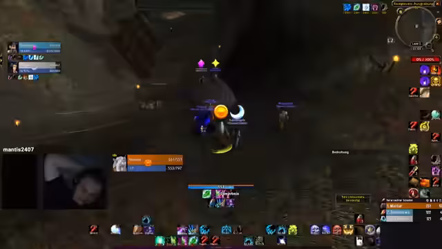 04:58:21Während der Fortbewegung durch das Gelände stellt der Streamer fest, dass Daniel nicht im Voice-Chat ist, was die Kommunikation erschwert. Er gibt ihm daher im Chat wichtige Tipps zur Bewältigung der Höhle. Parallel dazu hilft er einem Zuschauer namens Suki bei der Erstellung eines Makros für seinen Zauberstab, um die Bedienung zu optimieren und einen höheren DPS zu ermöglichen.