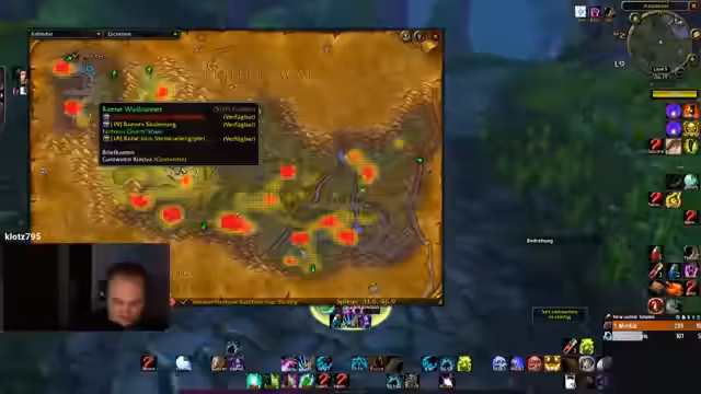 07:39:36Das Team beginnt mit der Durchführung der Bären-Quest in Ashenvale. Der Streamer gibt strikte Anweisungen: Die Gruppe soll nicht auf den Wegen laufen, um gefährliche Hinterhalte zu vermeiden. Er erklärt, dass Hinterhalte auf der Karte als orangefarbene Flecken sichtbar sind und wenn Spieler auf den Wegen laufen, erscheinen plötzlich viele feindliche Monster. Er betont die Lebensgefahr dieser Hinterhalte und rät der Gruppe, sich dicht an ihn zu halten und, wenn möglich, eine Glocke mitzuführen, um den Anführer zu wecken.