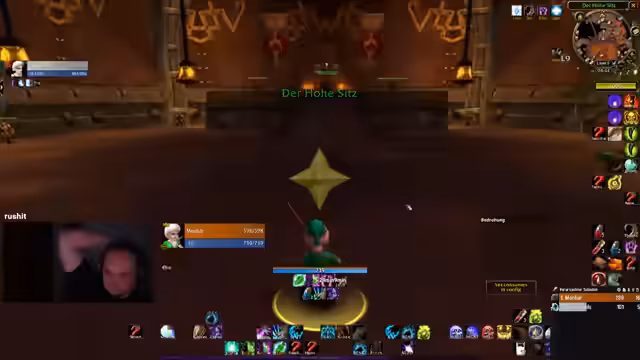 05:41:42Ein seltener Mob der Stufe 20 wird gesichtet, was zu einer intensiven Vorbereitung führt. Die Gruppe bufft sich gegenseitig mit dem Mistelzweig-Item, um zusätzlichen Gesundheitsschutz zu erhalten. Es werden klare Anweisungen für den Heiler gegeben: Er soll präventiv heilen (preheal), aber den Zauber sofort abbrechen, wenn keine Schadensanfälle erfolgen. Dies soll verhindern, dass der Heiler selbst Aggro anzieht. Die Strategie zielt darauf ab, zuerst die kleineren Gegner zu eliminieren, bevor der seltene Boss angegriffen wird.