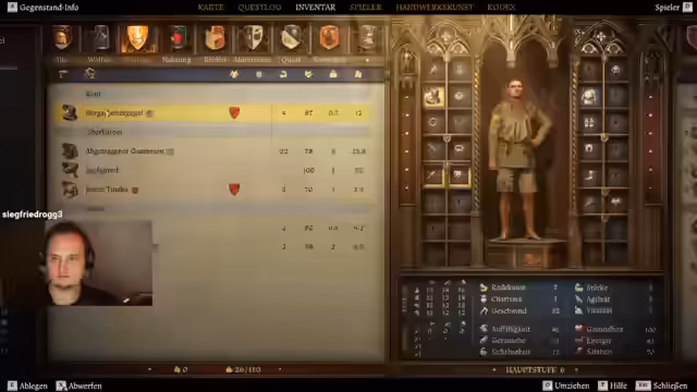 03:13:14Die Identität des Spielers ist Hans Karpon, Herr von Pirckstein, dessen Ruhesystem eine zentrale Mechanik darstellt. Durch NPC-Interaktionen und Handlungen, insbesondere Diebstahl, wird der Ruhewert negativ beeinflusst. So wird der Spieler von einer Frau bezichtigt, ein Dieb zu sein, obwohl er denkt, er habe nur seine Arbeit als Knecht erledigt. Dieser Vorfall führt dazu, dass er mit dem Pranger konfrontiert wird und wertvolle Gegenstände wie Geld und ein Messer verliert.