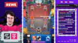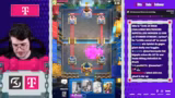 00:34:04Während des Runs demonstriert der Streamer sein Gameplay mit dem Poison-Deck. Er erklärt die strategischen Züge für verschiedene Match-ups. Gegen Decks wie Evo-Royal Giant ist es wichtig, defensiv zu spielen, den Ghost geschickt einzusetzen und Druck auf die gegnerische King-Tower auszuüben. Der Fokus liegt darauf, durch gezielte Gegenangriffe und effizientes Elixier-Management einen Vorteil zu erlangen, ohne sich übermäßig zu engagieren.