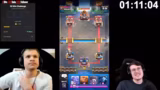 01:42:16Zu Beginn des Streams werden diverse Karten und Matchups bewertet, wobei Hypno und Bowling als problematisch angesehen werden. Streamer betont, dass er wegen der 20-Siege-Challenge mit einem alternativen Account spielt, da er den bereits erreicht hat. Er kritisiert wiederholte dumme Fragen im Chat und versichert, dass er nicht nur auf Leather konzentrieren werde. Er geht auf die Geschichte der Challenge ein und ruft zur Disziplin auf, um die 20 Siege zu schaffen. Es werden diverse Gameplays gezeigt und einige Siege eingefahren.