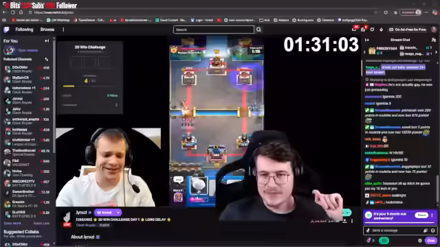 01:32:00Nach dem erfolgreichen Run gibt der Streamer Einblicke in die kommende Zeit. Er erwähnt den geplanten 12-Stunden-Stream am nächsten Tag, an dem er wieder die 20-Sieges-Challenge bestreiten wird. Zudem kündigt er die offiziellen Live-Übertragungen der Clash Royale World Finals an, die auf seinem Kanal stattfinden werden. Er betont, wie sehr er sich auf diese und zukünftige Inhalte freut.
