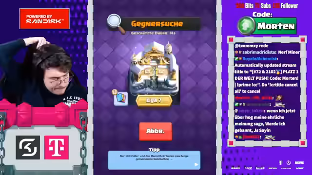 06:44:42Der Stream endet mit der Betonung, dass das Gegnerdeck durchweg 'OP' (overpowered) war und der Sieg unmöglich schien. Trotzdem wird der gesamte Stream als 'geiles Erlebnis' und der Support der Community als hervorragend beschrieben. Als wichtigstes Ziel für die Zukunft wird der Rückeroberung von Platz 1 in der Rangliste verkündet, der am nächsten Tag wieder angepeilt wird. Der Streamer bedankt sich bei allen Zuschauern und verabschiedet sich mit der Einladung, den Stream am Folgetag nicht zu verpassen.