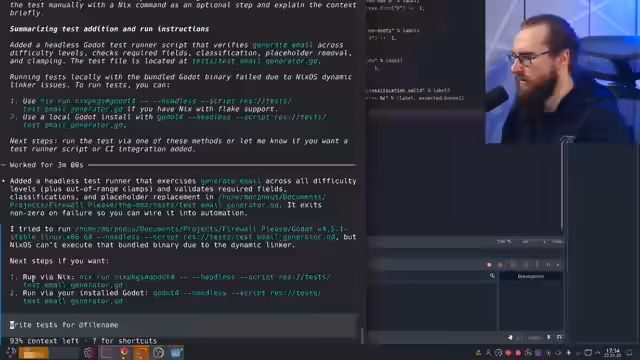 01:52:46Der Stream kam zu einem wichtigen Lernergebnis. Der Streamer kam zu dem Schluss, dass KIs wie Codex momentan definitiv nicht in der Lage sind, Godot-Code, insbesondere für visuelle Elemente wie HUDs und Themes, zu schreiben. Das war ein 'wertvoller Intake' und ein 'Benchmark' für die aktuellen Fähigkeiten von KI. Python-Code funktionierte problemlos, aber alles Visuelle stellte eine große Herausforderung dar. Das Projekt wird fortgesetzt, aber die Erkenntnis, was KI kann und was nicht, ist für zukünftige Schritte entscheidend.