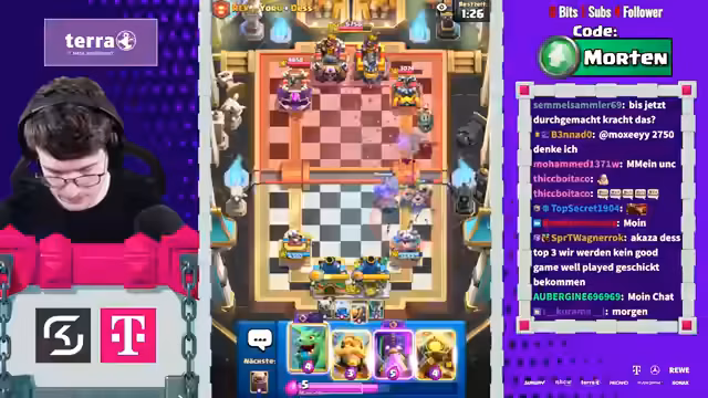 00:01:10Der Stream beginnt mit dem Fokus auf die letzten beiden Stunden der 2vs2-Saison. Streamer und Teamkollegen warten auf den Start des nächsten Matches, um eine starke Leistung zu erbringen und ihren Rang zu verbessern. Die Stimmung ist angespannt, aber auch motiviert, da das Ziel klar ist: ein Platz in den Top der Welt.