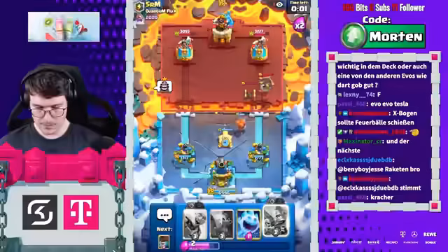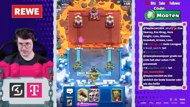 00:25:39In einem persönlichen Moment spricht der Streamer über seine Motivation, Clash Royale zu streamen, und betont, dass es aus Leidenschaft geschieht, nicht primär für das Geld. Auf Zuschauerfragen hin berichtet er von seiner Hauptbeschäftigung an einer Tankstelle. Die Interaktion mit dem Chat ist zentral, und er reagiert auf verschiedene Kommentare, Anekdoten und Begrüßungen, was eine sehr persönliche und direkte Atmosphere schafft.
