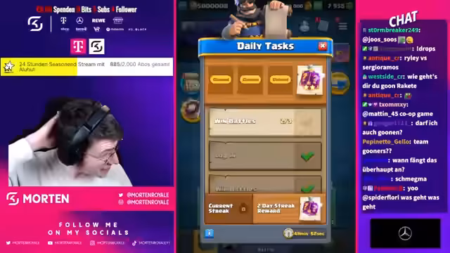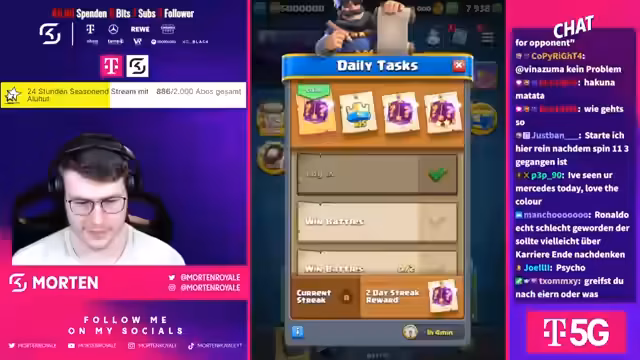 01:27:09Es wird die Bedeutung des eigenen Erfolgs mit einem Deck betont und dazu aufgerufen, nicht auf Hater zu hören. Der Streamer warnt davor, dem Gegner einen Elixiervorsprung zu gewähren, und äußert sich belästigt von einem Kobold. Es wird über eine Tinder-Einstellung des Streamers für 42-Jährige gescherzt. Es wird spekuliert, ob der Streamer selbst 44 oder 45 Jahre alt ist. Der Streamer nimmt eine Freundschaftsanfrage an und kommentiert seinen Buckel. Es wird nach den Top-3-Eigenschaften des Streamers gefragt und die TikTok-Präsenz erwähnt. Der Streamer äußert sich zur Normalität von Oli im Vergleich zu anderen und schlägt einen Call zwischen Oli und Mati vor, der auf Twitch gebannt werden würde. Es wird ein Coaching-Angebot von Sasuke, Ollie und Martin erwähnt. Der Streamer verteidigt Oli als den Normalsten der Dreien und erwähnt einen Stream von Annaband gegen Rohat.