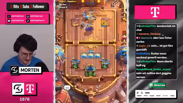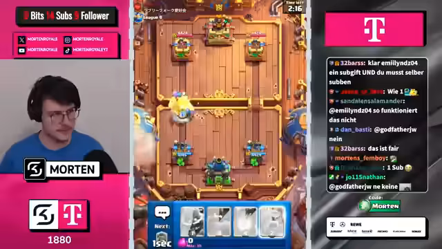 01:12:38Ein knappes und ungewöhnliches Spiel gegen ein ' verrücktes ' Deck wird gewonnen, was vom Streamer mit ' alarm ' kommentiert wird. Der Gegner wird für seine unkonventionelle Spielweise und hohen Kartenlevel kritisiert. Gleichzeitig wird das Thema ' Skandal Sub ' im Chat aufgegriffen, wobei der Streamer das Verfahren zum Belohnungssystem als ' Täter-Opfer-Umkehr ' bezeichnet und über die damit verbundene Frustration spricht.
