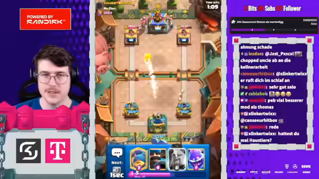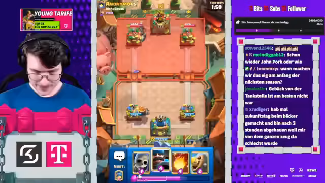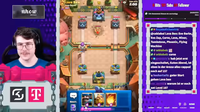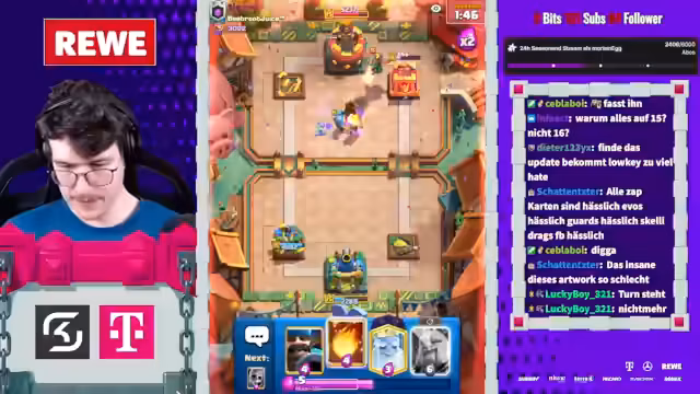 00:01:40Das größte Thema ist das neue Clash Royale Update, bei dem alle Spieler Karten kostenlos auf Level 16 upgraden können. Der Streamer betont, wie einfach und 'free' dies im Vergleich zu früheren Updates ist. Innerhalb eines halben Jahres wird fast jeder ein maxed Deck haben. Das fühlt sich komplett kostenlos an, da man jetzt für früheren Fortschritt belohnt wird, anstatt wie zuvor übelst viel Geld reinzubezahlen.