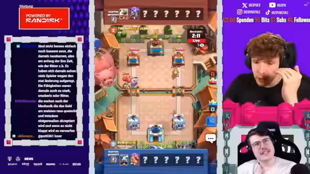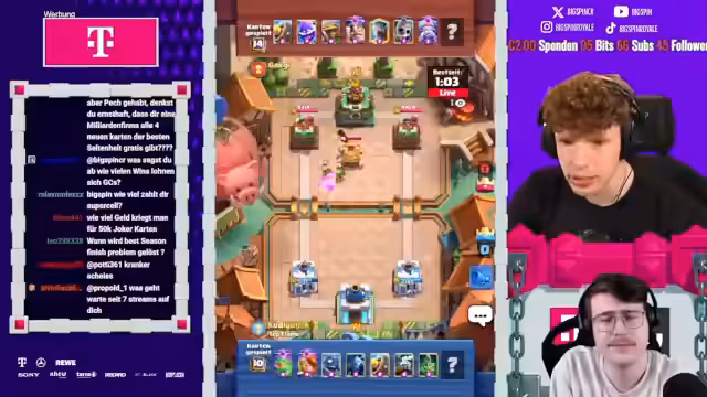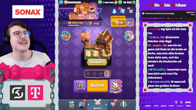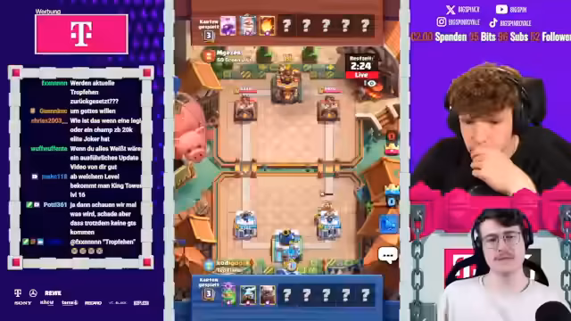 00:01:08Der Stream beginnt mit einer Diskussion über das bevorstehende Helden-Update in Clash Royale. Es wird schnell klar, dass die Meinungen der Community gespalten sind. Während einige Zuschauer das Update mit Spannung erwarten, äußern andere Bedenken und Kritik. Besonders die Einführung von zwei Hero-Slots wird als potenziell zu viel empfunden, da dies die Komplexität des Spiels erheblich steigern könnte. Die Tatsache, dass man einen zufälligen Helden gratis erhält, wird zwar positiv bewertet, jedoch stößt die Möglichkeit, Duplikate zu ziehen, auf großes Unverständnis und wird als 'Kinderverarsche' und 'Skandal' bezeichnet. Die Diskussion dreht sich auch um die neue Trophy Road mit 12.000 Trophäen als Ziel und die damit verbundenen Qualifikationsanforderungen, die als herausfordernd beschrieben werden. Insgesamt wird das Update als potenziell stark, aber auch mit einigen fragwürdigen Aspekten behaftet wahrgenommen.