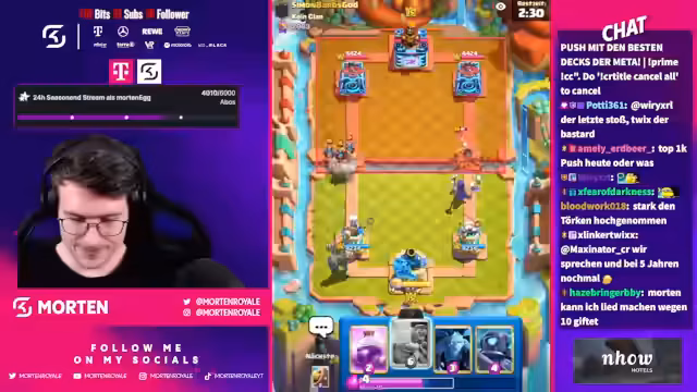 02:35:11Es wurde über mögliche Nerfs für bestimmte Karten diskutiert, wobei der Streamer seine Frustration über den aktuellen Zustand des Spiels zum Ausdruck brachte. Er bezeichnete das Spiel als „geisteskrank Aids“ und kritisierte den Snowball-Zauber. Trotz der Kritik betonte er seine Hassliebe zu Clash Royale und lobte das Spielprinzip an sich. Er sprach über die Evo-Kanone und analysierte das Spielverhalten eines Gegners, wobei er dessen langfristigen Erfolg in Frage stellte. Er scherzte über den Namen eines Zuschauers und teilte seine Vorliebe für seltene Namen mit.