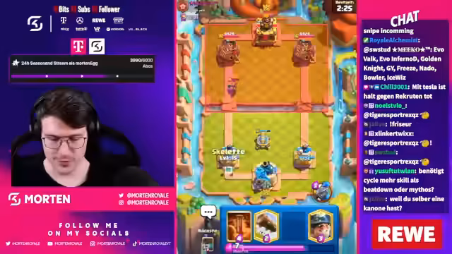 01:14:17Während des Streams erlebt der Streamer Höhen und Tiefen im Spielverlauf, mit wechselnden Erfolgen bei Miner und Goblin Giant Decks. Er interagiert mit dem Chat, beantwortet Fragen zur Meta und diskutiert mögliche Strategien. Der Streamer zeigt sich verärgert über bestimmte Gameplay-Aspekte und teilt seine Ansichten zur Entwicklung des Spiels, insbesondere zur Evolution-Mechanik.