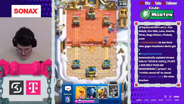 00:00:13Das Ziel für den aktuellen Stream ist ambitioniert: Ein Platz in den Top 10 oder zumindest Top 20 wird angestrebt. Der Fokus liegt auf massivem Push, da sich das Seasonende naht. Der Streamer präsentiert sich motiviert und gibt zu Protokoll, er werde die schwierigen Matchups offen und direkt ansprechen. Die Streaming-Zukunft wird thematisiert, mit der Ankündigung, dass morgen ein großer Season-Endstream stattfinden wird.
