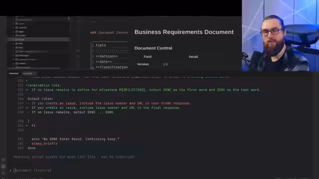 03:09:05Ein neues Projekt, ein Online-Spiel für Security Awareness, wird im Stream mit Hilfe von KI-Agenten entwickelt. In einem einzigen Stream entsteht eine detaillierte Business Requirements Documentation (BRD) durch das Spawnen mehrerer Research-Agents. Daraus folgen umfassende Design-Dokumente, inklusive Game Core Loop, State Machine und E-Mail-System. Aus diesen Dokumenten wird eine Milestone-Roadmap erstellt, die alle notwendigen Schritte für den Projektstart auflistet, was den agilen und systematischen Ansatz verdeutlicht.