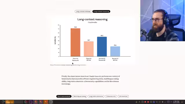 00:10:57Nach dem 'Sneak Peek' wechselte der Streamer zum Hauptthema des Streams: eine Reaktion zu den neuesten Entwicklungen bei KI-Modellen. Die Hauptaugenmerke gingen auf zwei Modelle: Claude Opus 4.6 und GPT-5.3 Codex. Besonders hervorgehoben wurde die massive Verbesserung des Opus 4.6 bei der Langtextverarbeitung (Needle Benchmark) und bei komplexen Coding-Aufgaben, wobei sich die Arbeitsweisen der beiden Modelle deutlich unterscheiden.