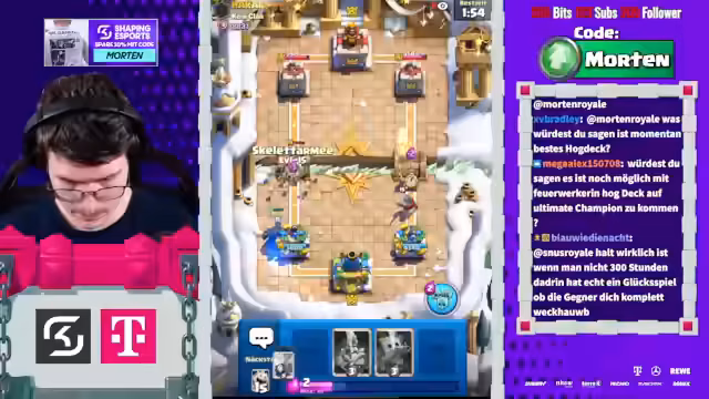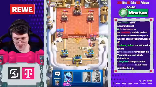 00:31:27Der Fokus liegt auf dem Spiel Clash Royale, insbesondere auf der Analyse von Karten und Strategien. Karten wie E.U. Skami werden als Denchlord-Karte bezeichnet und gelobt. Das Gameplay ist geprägt von taktischen Erwägungen, der Verwendung von wie z.B. Instant-Ability, sowie der Analyse von Fehlern im Spielverlauf, wie dem unerwarteten Tod eines Evo Skami, der zum Verlust des Spiels führte.