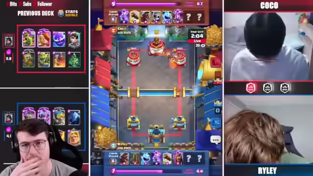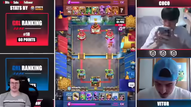 02:21:39Coco gewinnt gegen Hugo und sichert sich einen Platz unter den Top 4. Die Analyse des Spiels Coco gegen Vitor zeigt, dass Coco mit einem Graveyard-Deck antritt, während Vitor wahrscheinlich ein Hoggie-Deck spielt. Es wird erwartet, dass Coco in diesem Matchup Vorteile hat, da er einen Ofen und E-Overcure besitzt, während Vitor nicht viele Kontermöglichkeiten gegen den Graveyard hat. Ein Fehler von Coco im ersten Spiel führt jedoch zu einem frühen Vorteil für Vitor, der diesen ausnutzt. Trotzdem wird Coco's Fähigkeit, im Triple-Elixier-Modus mit Vines und Graveyard zu dominieren, betont. Vitor gewinnt das erste Spiel, aber es wird erwartet, dass Coco im weiteren Verlauf des Matches stärker wird. Es wird diskutiert, dass das Piggy-Deck eine hohe Gewinnrate hat und dass Coco's Koch-Deck eine gute Wahl sein könnte, besonders weil er die Hexe hat.
