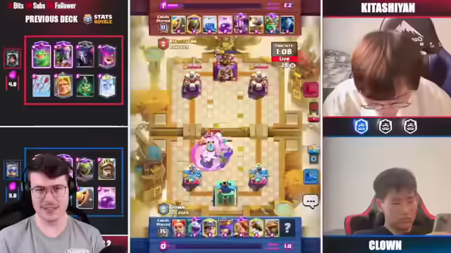 00:42:55Das Match zwischen Kidassian und Klauen im Lower Bracket wird analysiert. Kidassian tritt mit Gob-Giant-Prinz und Klauen mit Pekka-Bridge-Sperm an. Klauen gewinnt das erste Spiel mit einem starken Push. Im zweiten Spiel kopiert Kidassian Klauns Deck, während Klauen ein günstiges Miner Cycle Deck spielt. Kidassian gewinnt das zweite Spiel, wodurch es zu einem entscheidenden dritten Spiel kommt. Im dritten Spiel spielt Klauen Hock Magier gegen Kidassians Drill. Klauen gewinnt das dritte Spiel und scheidet Kidassian aus dem Turnier aus. Klauns abgezockte Spielweise wird gelobt.