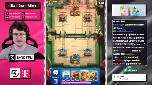 00:52:28Der Streamer geht detailliert auf die aktuelle Meta ein. Er kritisiert, dass Decks wie 'Evo Valkyrie / Evo Baby Dragon' und 'Dark Bins' aufgrund von Bugs, wie dem Pathfinding-Bug für den E-Giant, zu stark sind. Der neue Hero Magier wird ebenfalls als schwächer empfunden und verliert in wichtigen Matchups an Wirkung, was die Spieltiefe reduzieren und das Spiel frustrierender macht. Er bewertet das aktuelle Update mit nur einer 6 von 10.