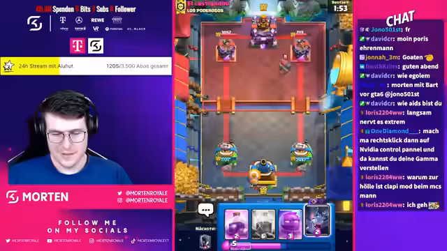 04:00:11Es entbrennt eine Diskussion über Diversität im Chat, nachdem der Streamer scherzhaft Frauen aus dem Chat verbannt hat. Er betont, dass Frauen im Stream willkommen sind und entschuldigt sich für seine sexistischen Äußerungen. Es folgen Diskussionen über verschiedene Spielstrategien und Decks, insbesondere im Zusammenhang mit dem Spiel Clash Royale. Der Streamer analysiert das Spielverhalten anderer Spieler und gibt Tipps zur Verbesserung. Es gibt auch humorvolle Kommentare und Beleidigungen zwischen dem Streamer und anderen Personen im Call. Der Streamer äußert sich kritisch über bestimmte Decks und Spieler, lobt aber auch kreative und erfolgreiche Strategien. Trotz einiger hitziger Debatten und Meinungsverschiedenheiten bleibt der Ton überwiegend humorvoll und unterhaltsam. Am Ende des Streams kündigt der Streamer ein neues YouTube-Video an und verabschiedet sich von seinen Zuschauern.