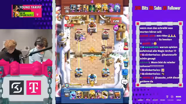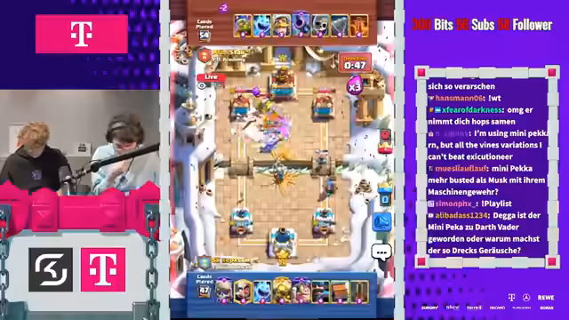 05:44:11Der Stream nähert sich dem Ende mit einem finalen Push, um seine Position zu sichern. Es wird das Deck mit Minipacker und Prinz gespielt, und die strategischen Züge, wie der Einsatz des Evo Mega Knight, werden besprochen. Der Fokus liegt auf der Verteidigung und der Sicherung des Gewinns. Das Spiel endet erfolgreich, was den Streamer dazu bringt, seine Position als "gehackter Onkel" zu erwähnen und den Stream mit einem Sieg abzuschließen.