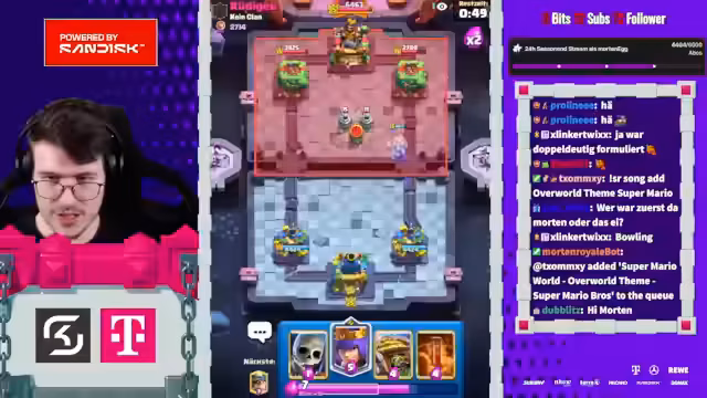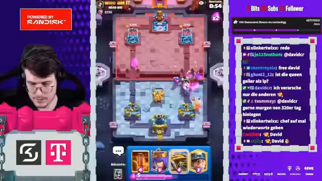 00:12:05Der Stream beginnt mit der Reflexion über die aktuelle Arena-Lage in Liga 4, in der das Treshot-Deck als sehr stark angesehen wird. Der Streamer berichtet über eine Auseinandersetzung mit einem Spieler namens T1 und erwähnt den massiven Schaden des neuen Evo-Königsgeistes. Er äußert sich zudem über die Herausforderungen in der Liga und die Stärke bestimmter Karten wie Drill, die als Vage-Bate-Karte bezeichnet wird.