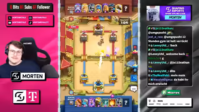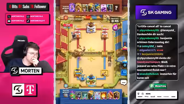 13:41:28Der Streamer reflektiert die abschließenden Spiele und den dritten Platz in der globalen Rangliste. Er zeigt sich zufrieden mit dem Finish, spricht aber über den Schmerz, knapp die Top 3 zu verpassen. Er analysiert den Spielstil des Siegers 'Mugi' positiv und gratuliert ihm. Der Fokus verschiebt sich auf den Ausblick: künftige Streams, die Einführung von neuen Karten im kommenden Monat und die Aufforderung an die Community, den Pass-Code 'Morten' einzutragen, um den Kanal zu unterstützen.