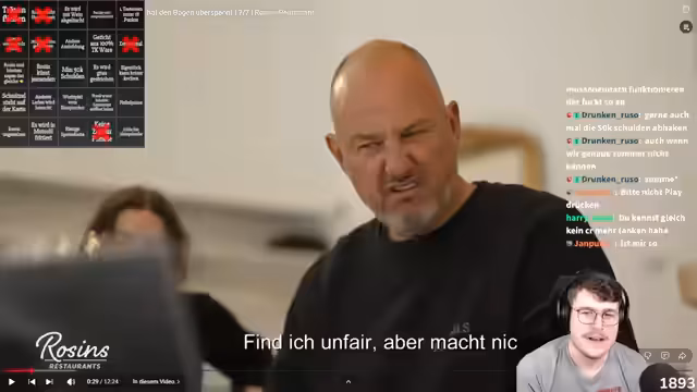00:03:34Der Stream beginnt mit einer Begrüßung des Chats und der Ankündigung eines extrem langen Streams, der 16 Stunden dauern und bis in die Morgenstunden reichen soll. Als Hauptinhalt ist die gemeinsame Betrachtung einer Folge der Dokumentation "Rosins Restaurants" geplant. Es wurde bereits eine passende Skandalfolge ausgewählt, welche die Zuschauer als besonders gut beschreiben. Der Streamer bittet darum, ein neues Reaction-Video zu liken und zu abonnieren.