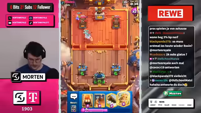 00:18:05Der Streamer beginnt mit Gameplay von Clash Royale, diskutiert seine Strategien und Misserfolge wie eine Dreierstreak. Er kritisiert Matchmaking und Karten wie den Zap, erwähnt Platzierungen im Global Tournament (GT) und reagiert auf verschiedene Spielsituationen. Ein Höhepunkt ist der Erreichen der ersten Platzierung mit einem Account, was für einen geplanten Upgrade auf Platz 1.2 dient. Der Fokus liegt auf der Analyse von Decks, Kartennutzung und den emotionalen Reaktionen auf Gewinne und Verluste.