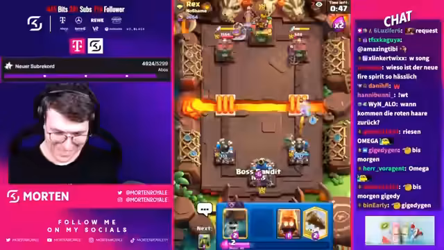 03:05:59Während des Spielverlaufs gibt es mehrere Momente des Frusts, als der Streamer angibt, dass er gegen sehr abgezockte Gegner verliert. Der Chat wird in die Entscheidungen miteinbezogen, wobei Kritik an gegnerischen Decks geäußert wird. Der Streamer motiviert einen Spieler namens Bernard positiv und betont die Unterstützung im Spiel.