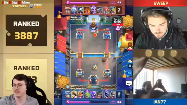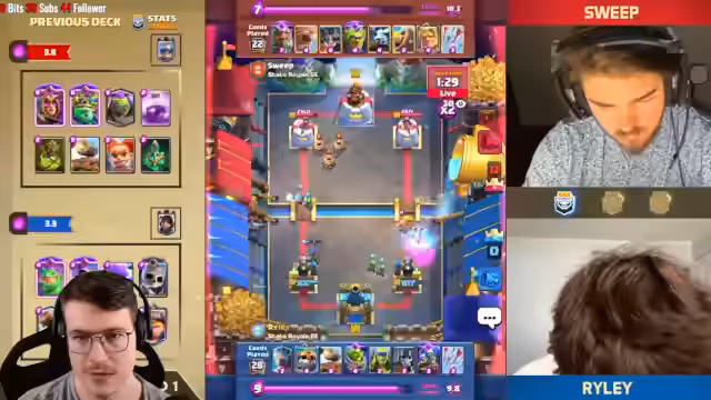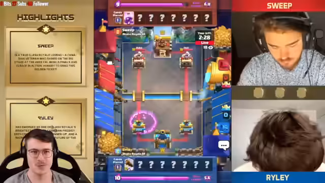 01:14:27Das entscheidende Match zwischen Riley und Sweep beginnt mit Riley, der den Eisgeist einsetzt und Sweep mit der Banditin kontert. Brücken-Spam und Bait-Strategien werden erwartet. Sweep setzt auf Pekka Brücke und Minions, was als aggressiver Zug bewertet wird. Sweep hat das Lock dabei, was überraschend ist. Es wird diskutiert, ob der Evo Battle Ram eine bessere Wahl gewesen wäre als der Evo Pekka. Sweep spielt zu aggressiv und verliert dadurch die Führung. Riley setzt sich durch und gewinnt das Match. Die Zuschauer analysieren Sweeps Fehlentscheidungen und loben Rileys Leistung. Die Vorfreude auf das nächste Spiel steigt, da dort entschieden wird, wer gegen Sam spielen wird. Es wird spekuliert, dass Sandbox gegen Viper spielen wird, wobei die Meinungen über den wahrscheinlichen Gewinner auseinandergehen.