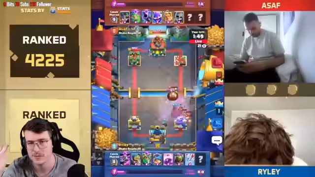 00:55:46Ein weiteres Schlüsselmatch findet zwischen Riley und Sweep statt. Die Kommentatoren heben hervor, dass Sweep durch den 'Koch'-Effekt deutlich favorisiert wird, während Riley als Experte für die Meta gilt. Tatsächlich dominiert Riley das erste Spiel mit einem starken Hogs-Deck gegen Sweeps Goblin Giant-Deck und gewinnt deutlich. Auch das zweite Spiel kann Riley für sich entscheiden, nachdem Sweep einen aggressiven Fehler macht. Mit diesem Sieg stärkt Riley seine eigene Position und reduziert gleichzeitig die Anzahl der direiven Konkurrenten für Sam.