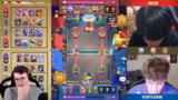 02:51:08Das zweite Spiel beginnt mit beiden Spielern, die identische Decks mit Goblin Giant, Evo-Hexe und Barbarian Barrel wählen, was als Mirror Matchup bezeichnet wird. Sandbox dominiert jedoch durch extrem effizientes Targeting, besonders mit seinem Seppis-Zauber. Indem er die Evo-Hexe sofort eliminiert und zusammen mit dem Goblin Giant einen unüberwindlichen Angriff aufbaut, zwingt er Sam zur Aufgabe und gewinnt das Spiel mit 1:0.