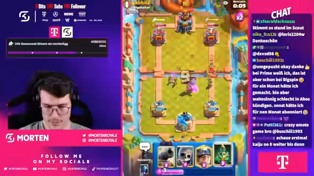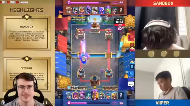 01:21:56Es wird angekündigt, dass es morgen Belohnungen über einen QR-Code geben wird. Das Spiel zwischen Viper und Sandbox beginnt. Sandbox hat einen Lüfter in seinem Raum, während Viper scheinbar keinen hat. Die Zuschauer bemerken ein seltsames Band im Hintergrund von Sandbox' Raum. Royal Giants treffen auf ein Royal Hogs Deck. Es wird analysiert, welche Karten die Spieler noch übrig haben und wie sich das auf das Matchup auswirken könnte. Der Verlierer des Spiels wird gegen Mugi spielen, was als Vorteil für Sam gesehen wird, da Mugi ein Konkurrent von ihm ist. Es wird betont, wie wichtig es für Sam ist, seine Partie zu gewinnen, um seine Chancen auf die Teilnahme am World Fight zu erhöhen. Der Grabstein erweist sich als stark gegen ihn, da es nur das Log als Konter gibt.