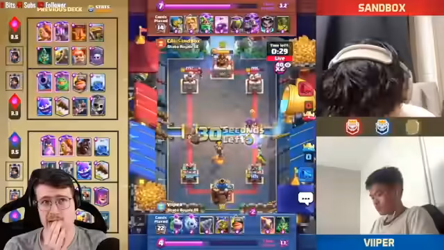 01:22:26Endlich beginnt das lang erwartete Match zwischen Viper und Sandbox. Das erste Deck-Paarung ist ein klassisches Royal Giant gegen Royal Hogs-Duell. Die Kommentatoren betonen die Wichtigkeit dieser Partie, da der Ausgang das gesamte Bracket für die weiteren Spiele, einschließlich des Matches gegen Sam, neu ordnen wird. Sie analysieren die von beiden Spielern ausgewählten Decks und geben Einblicke in die Stärken und Schwächen des Matchups. Die Spannung steigt, da das Spiel live und direkt nach der Vorstellung gestreamt wird.