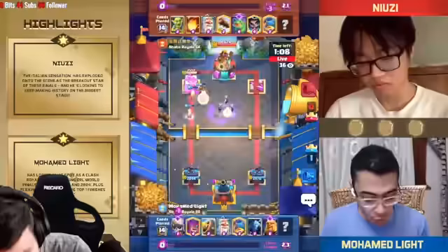 02:09:51Das Match zwischen Egor und Riley beginnt mit einer Analyse der Decks. Egor setzt auf ein Skelly-Tesla-Deck, während Riley Greyfad wählt. Ein unerwarteter Golden Knight von Egor bringt Riley aus dem Konzept und führt zu einem frühen Schadensnachteil. Trotz Rileys Bemühungen, mit Graveyard Poison gegenzuhalten, erweist sich Egors Defensive als zu stark. Egor gewinnt das erste Spiel, was seine Chancen auf die World Finals deutlich erhöht. Im zweiten Spiel wechselt Riley seine Strategie und überrascht Egor mit einem Golden Knight auf der anderen Seite, was ihm den Ausgleich sichert. Im entscheidenden dritten Match wählen beide Spieler Heilgeist, aber Egor setzt sich schließlich durch, was seinen Sieg besiegelt. Der MK-Jump wird als entscheidender Moment hervorgehoben, der es ihm ermöglicht, an der Brücke zu pushen und das Spiel für sich zu entscheiden. Damit gewinnt Egor 2:1 gegen Riley.