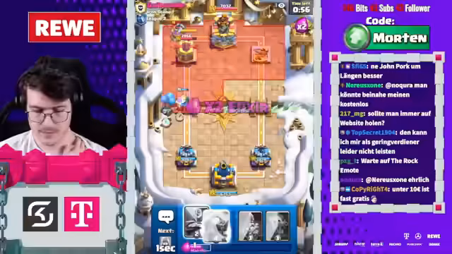 00:12:03Der Stream beginnt mit einer detaillierten Analyse der Spielstrategien von BVB Gaming und Maxi, wobei die Block-Decks und spezifischen Spielweisen der Kontrahenten erörtert werden. Es wird hervorgehoben, dass BVB Gaming als einer der besten Spieler seines Teams gilt. Die Diskussion dreht sich auch um persönliche Präferenzen und Abneigungen gegenüber bestimmten Karten im Spiel, insbesondere die Karte 'Cracker' wird als besonders 'eklig' bezeichnet. Es wird auch über die eigenen Erfolge im Spiel gesprochen, darunter ein Highscore von 15.000 Trophäen und der Grand Champion Rang in der Rangliste, was als bemerkenswerte Leistung anerkannt wird. Die Zuschauer werden in die Diskussion einbezogen, indem Fragen zur Identifikation mit bestimmten Spielern und zur allgemeinen Spielphilosophie gestellt werden, was eine interaktive Atmosphäre schafft.