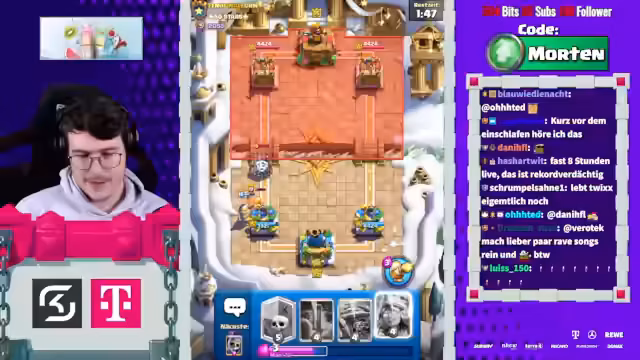 02:12:22Der Stream startet mit einer Analyse des eigenen Spielstils, bei dem zu hoher Schaden oft als problematisch angesehen wird, da dies zu einer mangelhaften Bildqualität führt. Es wird erwähnt, dass Prime-Mitglieder werbefreien Zugang zum Stream haben und damit den Kanal unterstützen. Des Weiteren wird eine Pay-to-Win-Mentalität eingestanden, wobei auf die hohen Kosten für bestimmte Karten wie den Demolisher hingewiesen wird, der als ineffizient eingestuft wird.