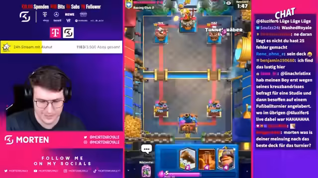 01:34:45Die Analyse des Spielgeschehens nimmt einen großen Raum ein, wobei sowohl die eigenen Fehler als auch die vermeintlichen Fehler der Gegner kommentiert werden. Es werden spezifische Spielzüge und Deck-Zusammenstellungen kritisiert, und es wird die Frage aufgeworfen, ob bestimmte Spielweisen als 'AIDS' (im Sinne von schlecht oder frustrierend) zu bezeichnen sind. Es wird die eigene Unzufriedenheit mit dem Spielverlauf und den zufälligen Matchups zum Ausdruck gebracht. Die Kommentare reichen von der Analyse einzelner Spielzüge bis hin zu generellen Aussagen über die Spielweise bestimmter Gegnertypen. Es wird die Bedeutung von Glück und Zufall im Spiel betont und die Frustration darüber geäußert, wenn ein Gegner trotz schlechten Spiels gewinnt. Es wird über die Schwierigkeit, gegen bestimmte Deck-Typen wie Lava oder Bait anzukommen, geklagt und die Notwendigkeit von Konzentration und präzisen Spielzügen hervorgehoben. Die eigenen Fähigkeiten werden in Frage gestellt, und es wird die Tendenz zur Selbstkritik deutlich.