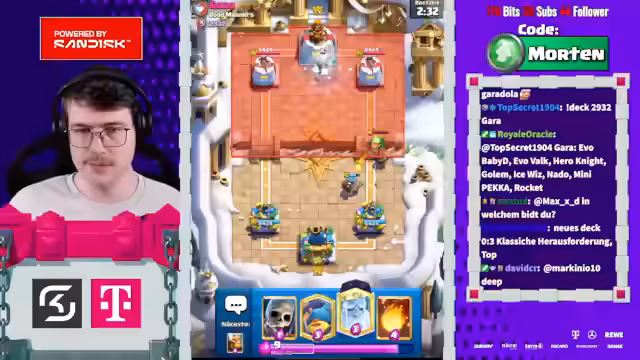 03:14:44Am Streamende bewertet der Streamer eine weitere Niederlage gegen ein Bait-Deck. Er analysiert die Wichtigkeit von Archievo-Strategien und bezeichnet die verlorene Runde als 'unnötig'. Trotz theoretischer Gewinnchancen in der Range ('Anal-Banane') wird die Niederlage als großer Fehlschlag ('Voll beim Arsch', 'AKD verloren') eingestuft. Die Gegnerzüge werden als schlecht bewertet, wobei die fehlgeschlagene Taktik gegen Bait-Decks besonders betont wird.